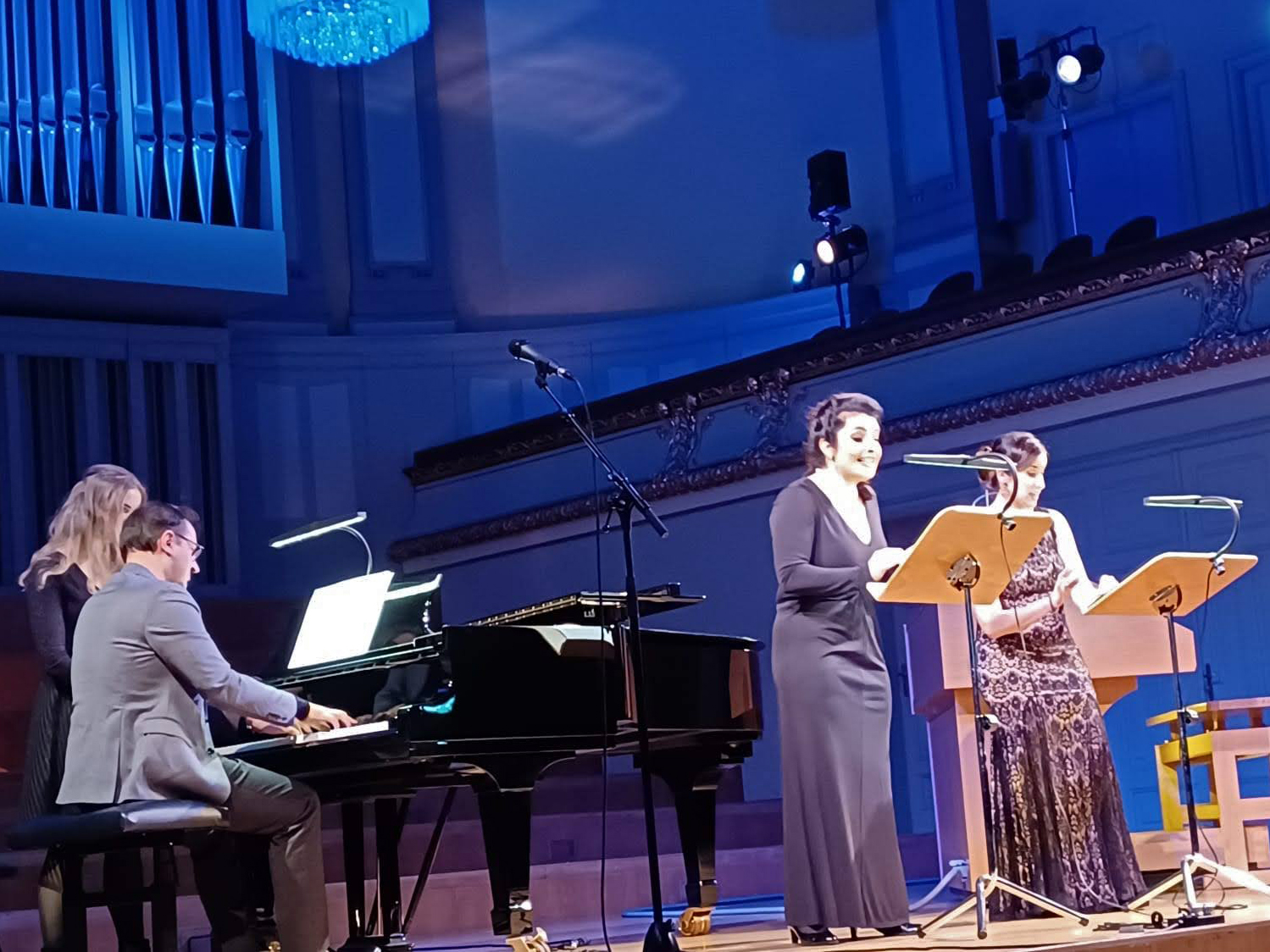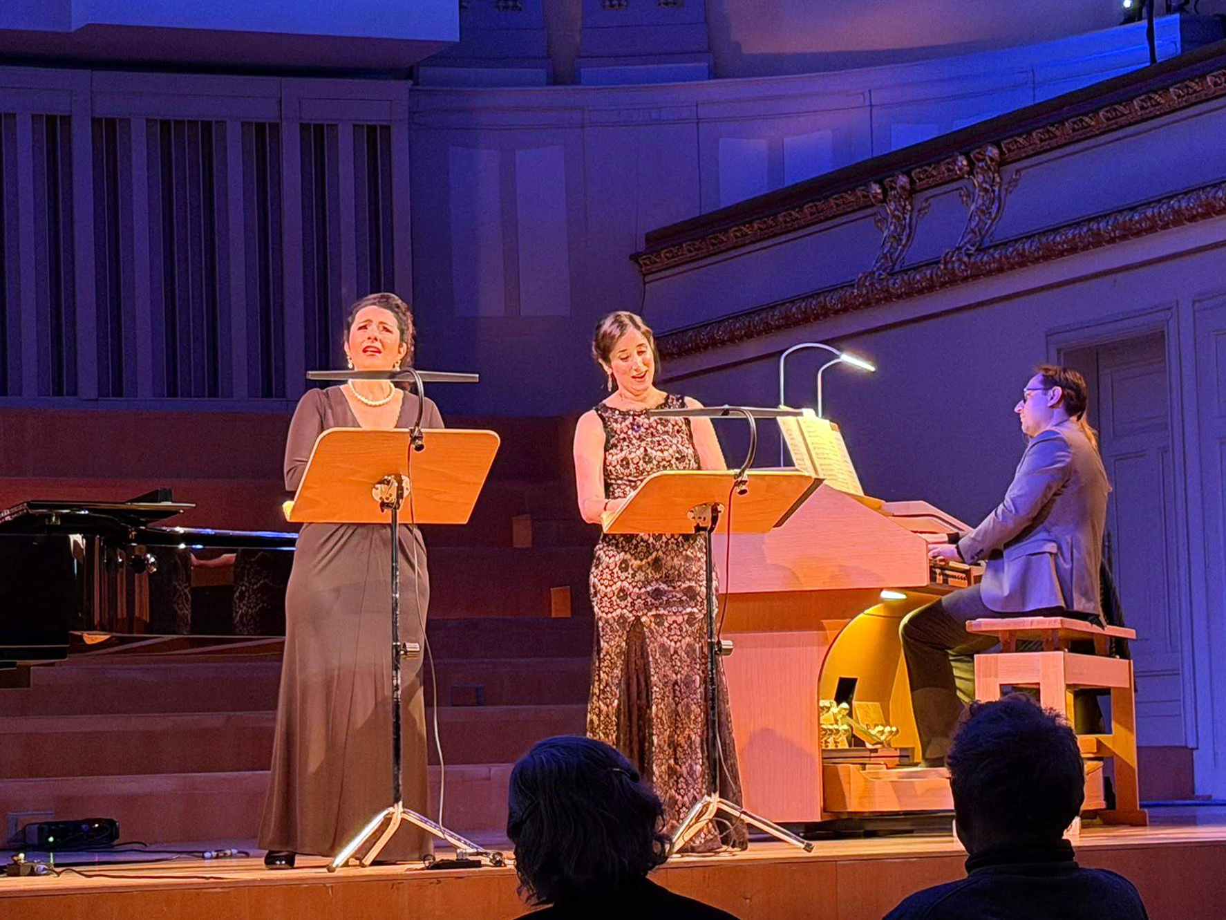 Ein ganz besonderer festlicher Glanz erstrahlte durch die beiden Sängerinnen Annick Vettraino (Sopran) und Lucia Carolina Perez (Alt). Beide sind Mitglied im Chor des Theaters. Beendet wurde der Orgelabend mit drei Gesangsstücken, die Benjamin Stielau am Konzertflügel begleitete.
