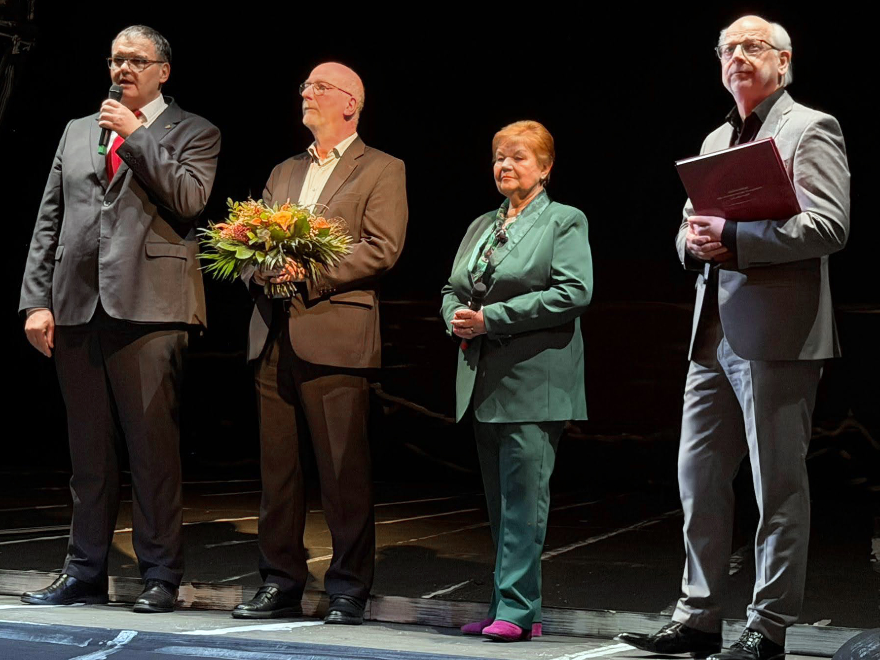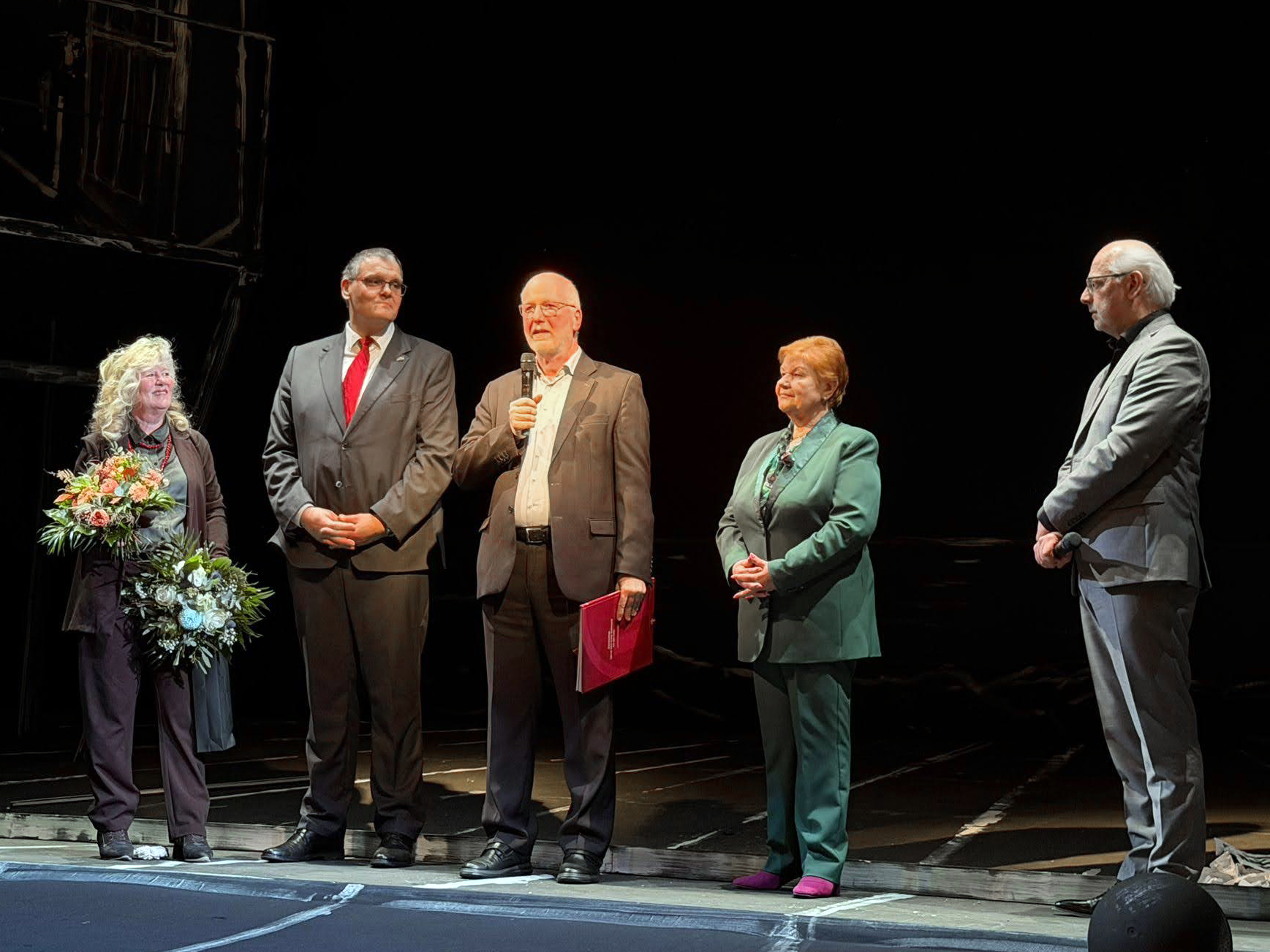Die offizielle Verabschiedung von Volker Arnold, Kaufmännischer Geschäftsführer seit 2015 des Theaters Altenburg Gera, erfolgte am 25. Januar 2026 vor der Vorstellung „Der Fliegende Holländer“. Neben der Würdigung seiner Tätigkeit in diesen 10 Jahren durch den OB Kurt Dannenberg und den Generalintendanten Kay Kuntze, haben auch wir als Gesellschaft der Theater- und Konzertfreunde Gera e.V. die Gelegenheit genutzt, um uns bei Volker Arnold für die langjährige sehr gute Zusammenarbeit herzlich zu bedanken. Immerhin haben wir dem Theater in diesen 10 Jahren ein Spendenvolumen von 275 000 € zukommen lassen und in gemeinsamer Verantwortung dem jeweiligen Zweck zugeführt. Als Dankeschön für dieses angenehme Miteinander überreichten wir ihm im Namen des Theatervereins einen Geschenkgutschein für Theaterkarten der Semperoper Dresden in Höhe von 200,00 € und eine gute Flasche Wein.